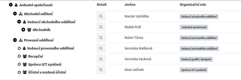 Popisujte transparentně odpovědnosti a povinnosti zaměstnanců. Hierarchická organizační struktura umožňuje propojit procesy a role se skutečnými osobami a jasně tak definovat, kdo za co zodpovídá.